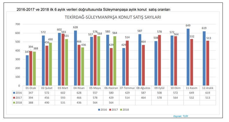 Tabloda TUİK verileri doğrultusunda Süleymanpaşa’nın son 3 yıl konut satışı bilgileri yer almaktadır.